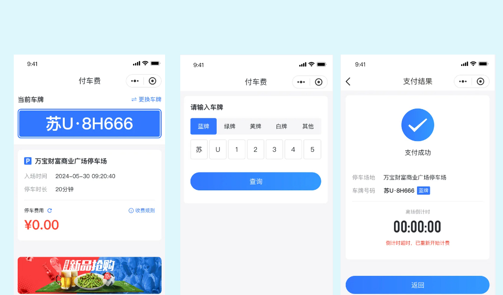 4. 自主广告位:除了基本停车功能,还提供商家自主配置广告位功能,减少恶意广告骚扰。