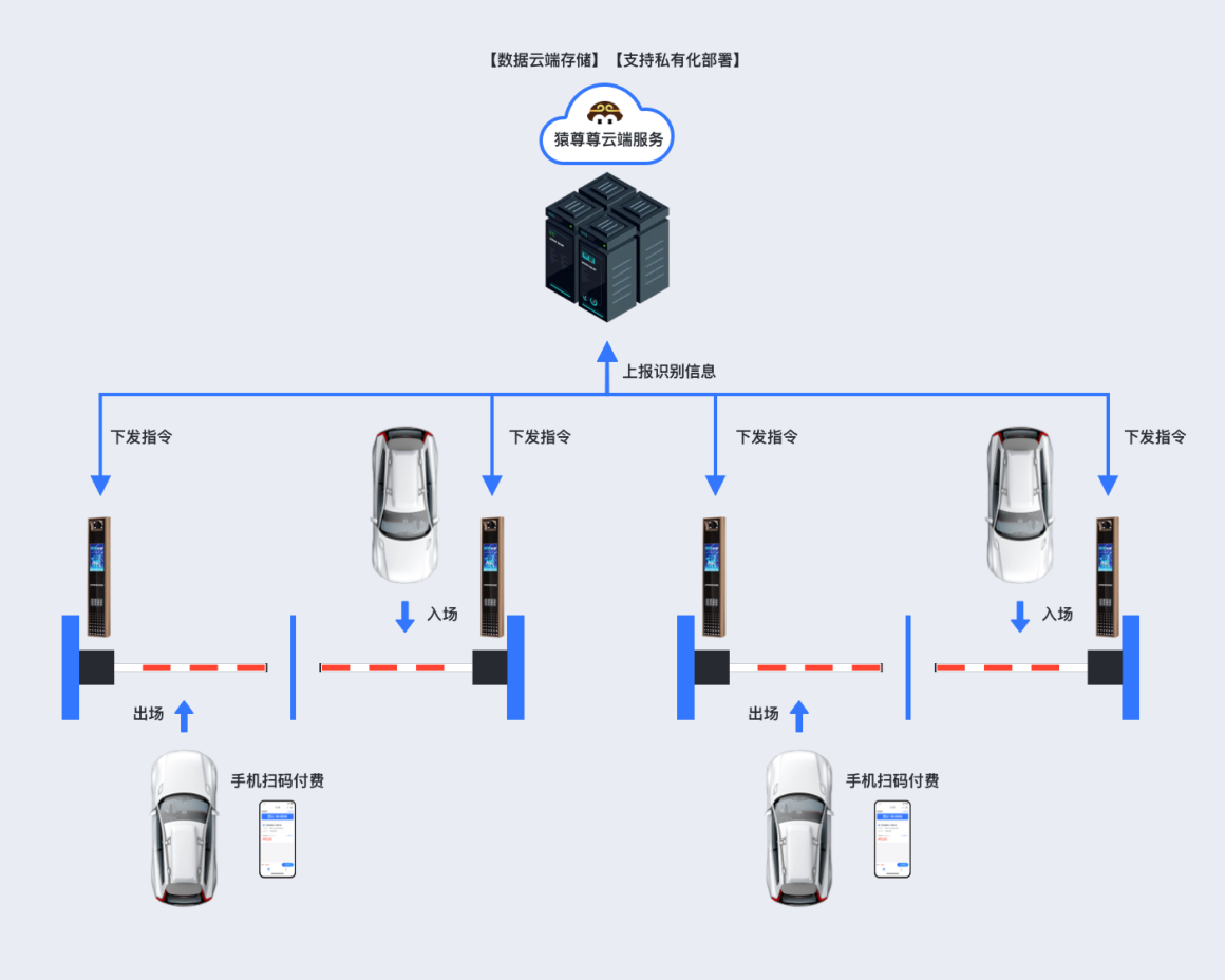 猿停车Saas平台,采用多各用户共享云服务的方式,云服务器采用的是企业级的处理器及硬盘,同等价格硬件性能更好,云平台有专业的运营运维人员定期维护,稳定性99.99%。